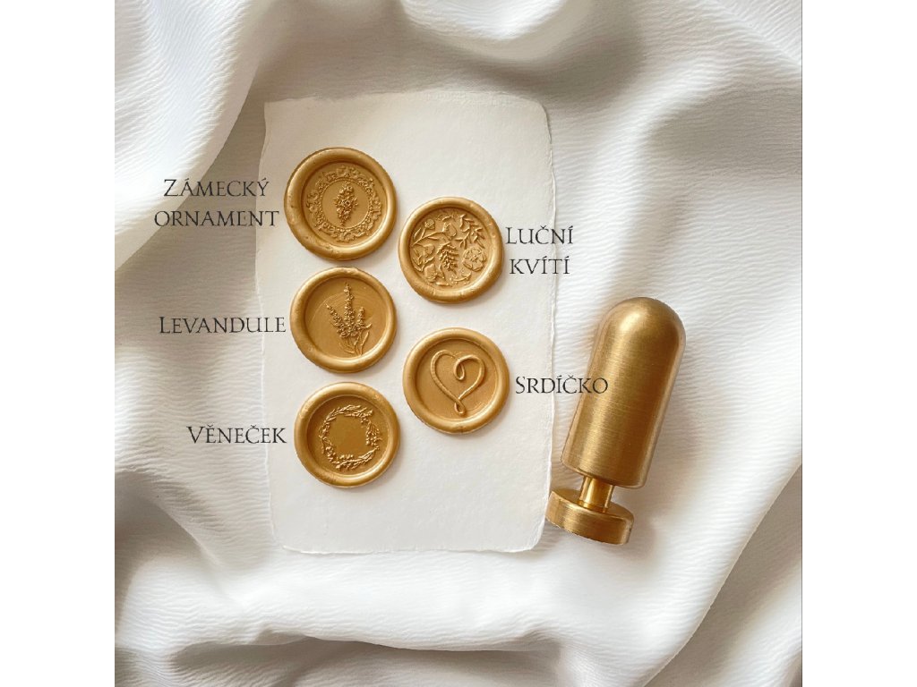 Ručne vyrábané pečate z prémiových voskov. Na výber je množstvo motívov a farieb. Vybraný motív a farbu uveďte v 3. kroku objednávky do poľa doplňujúce informácie k objednávke.