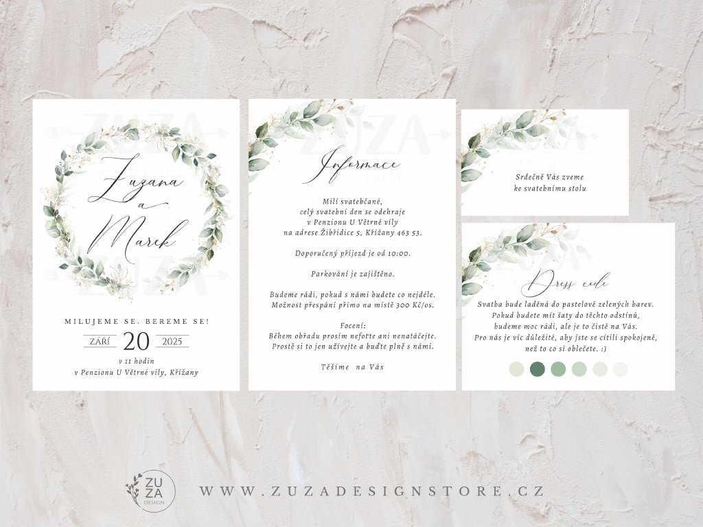 V rovnakom dizajne ako oznámenie možno objednať aj ďalšie tlačoviny na svadbu či iný Deň D.