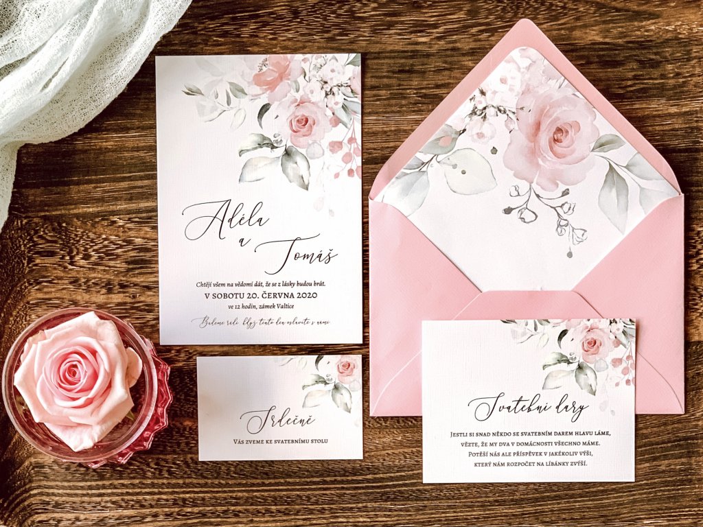 V rovnakom dizajne ako oznámenie možno objednať aj ďalšie tlačoviny na svadbu či iný Deň D.