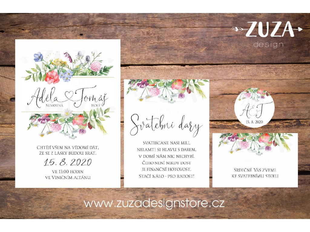 V rovnakom dizajne ako oznámenie možno objednať aj ďalšie tlačoviny na svadbu či iný Deň D.