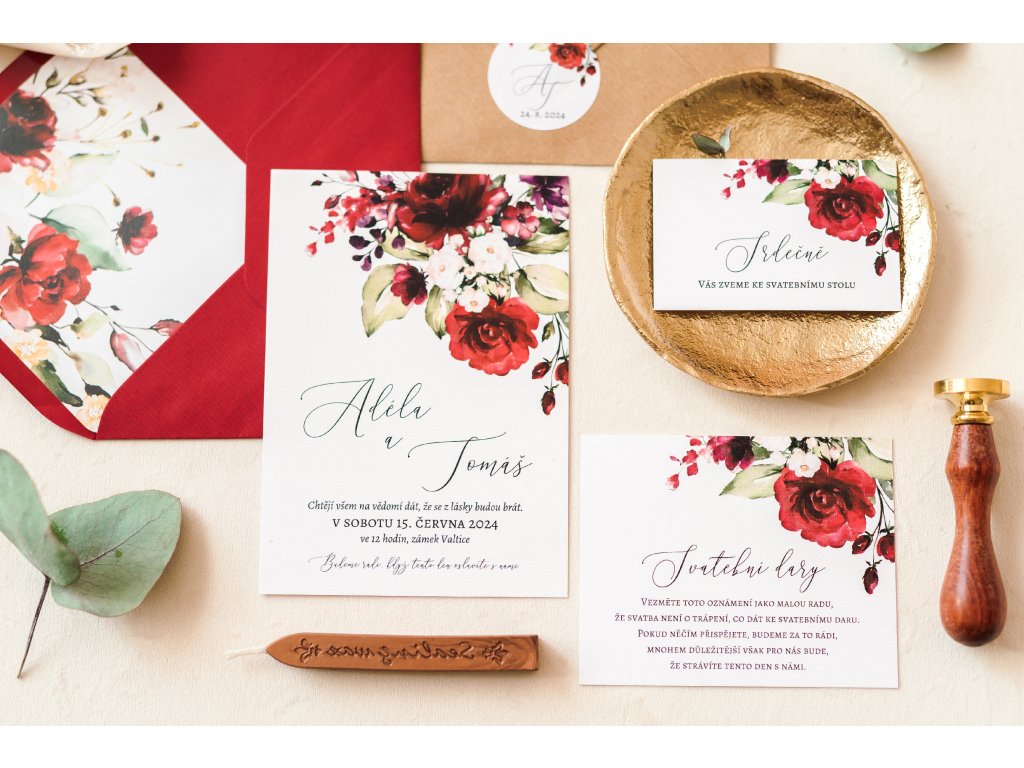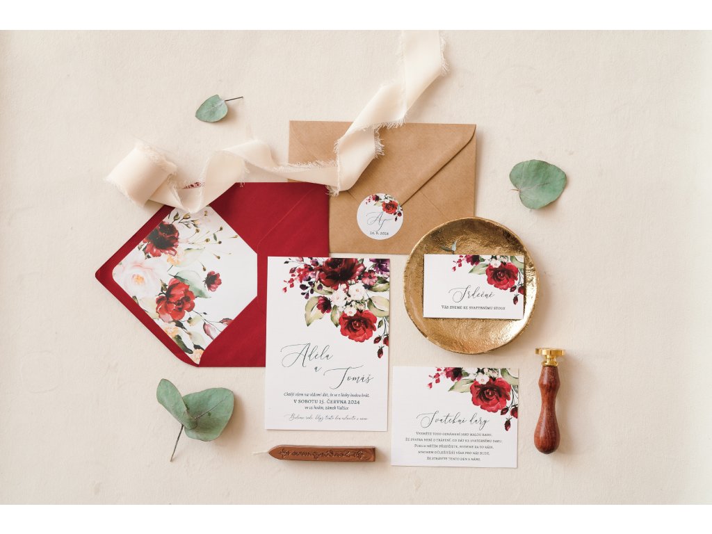 V rovnakom dizajne ako oznámenie možno objednať aj ďalšie tlačoviny na svadbu či iný Deň D.