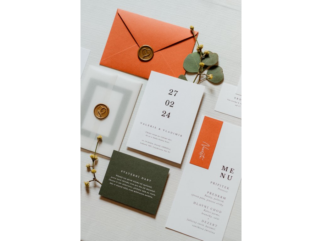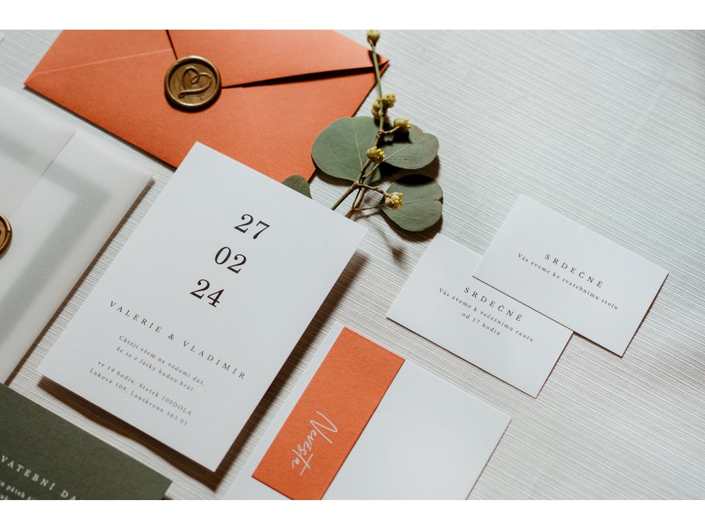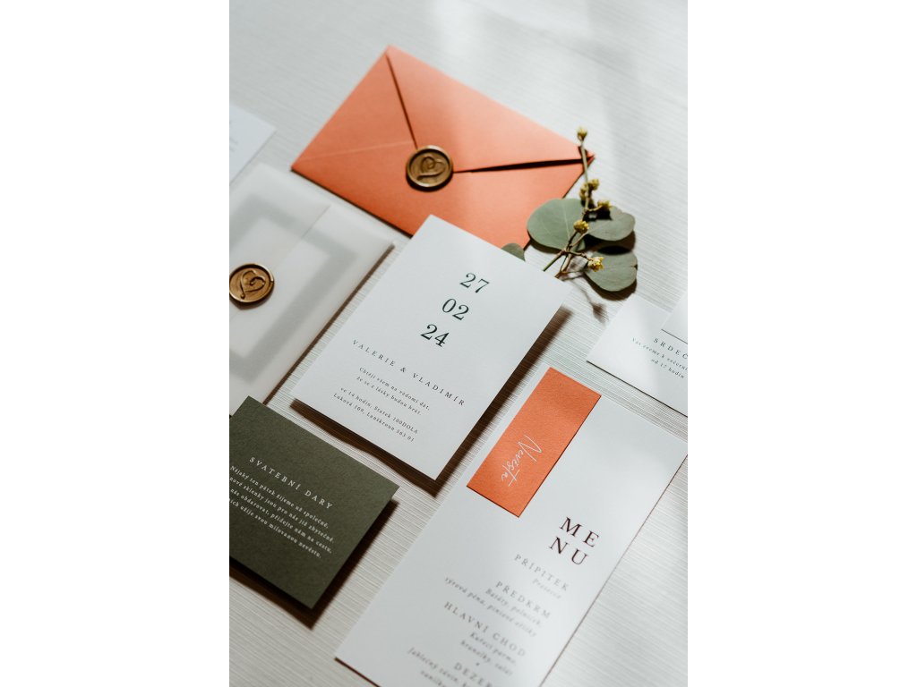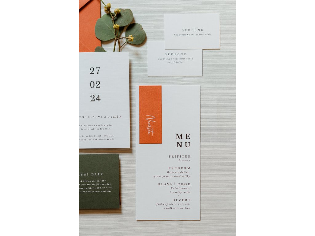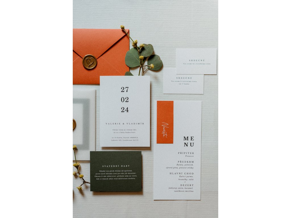 V rovnakom dizajne ako oznámenie možno objednať aj ďalšie tlačoviny na svadbu či iný Deň D.