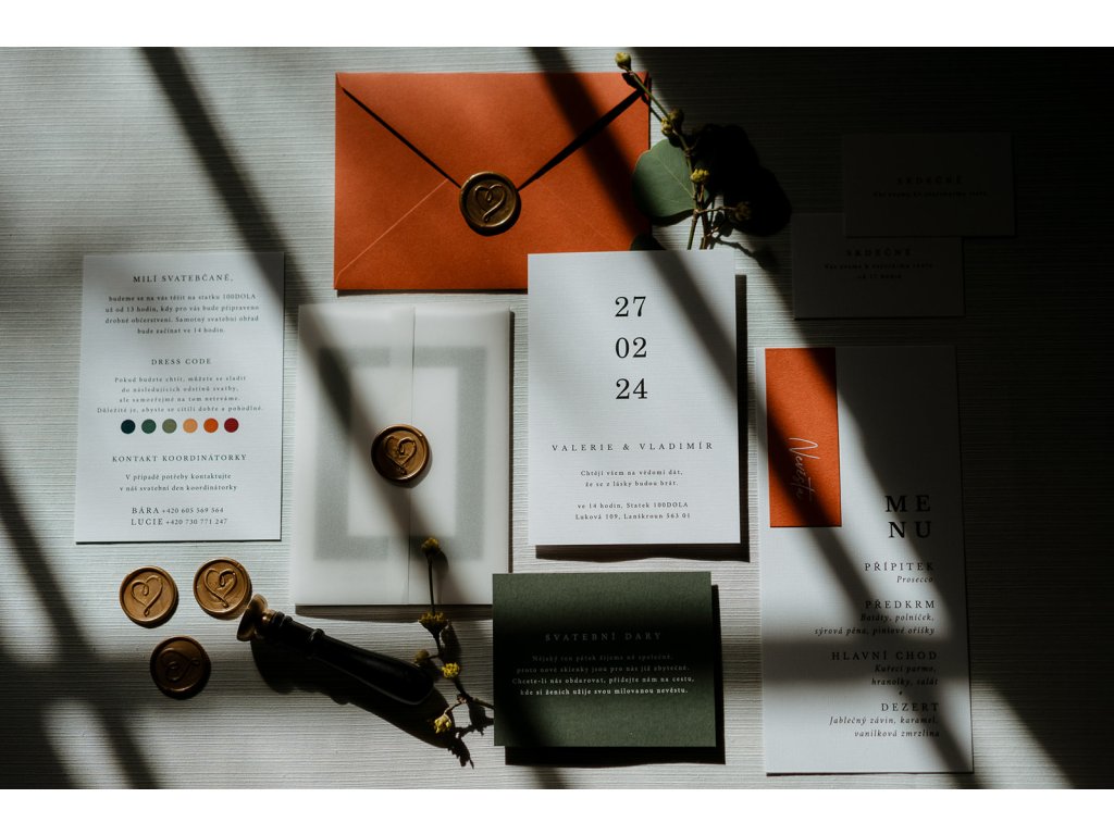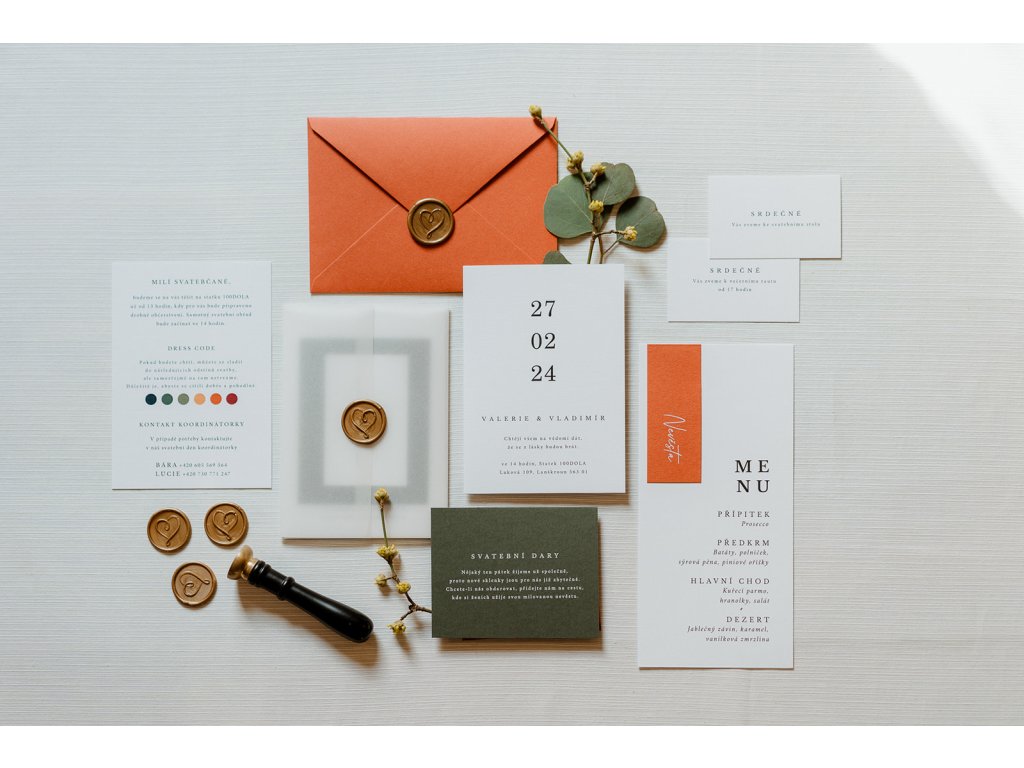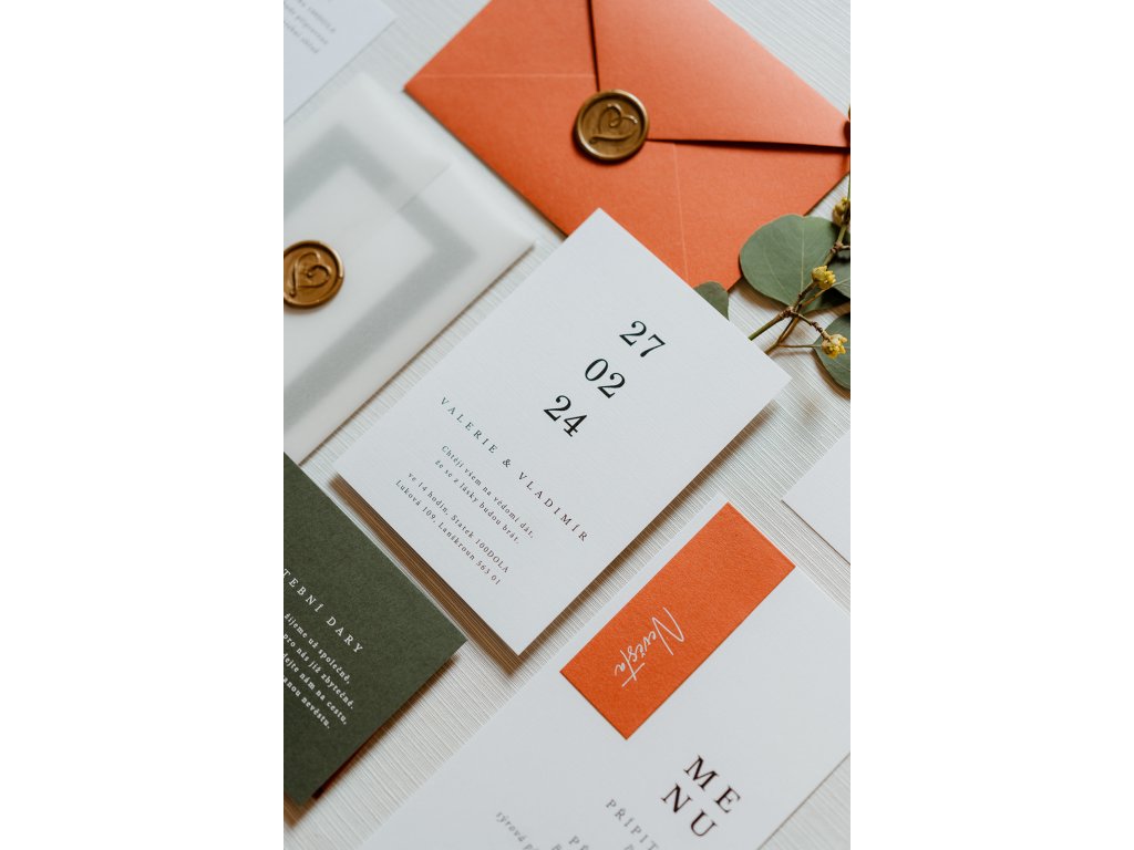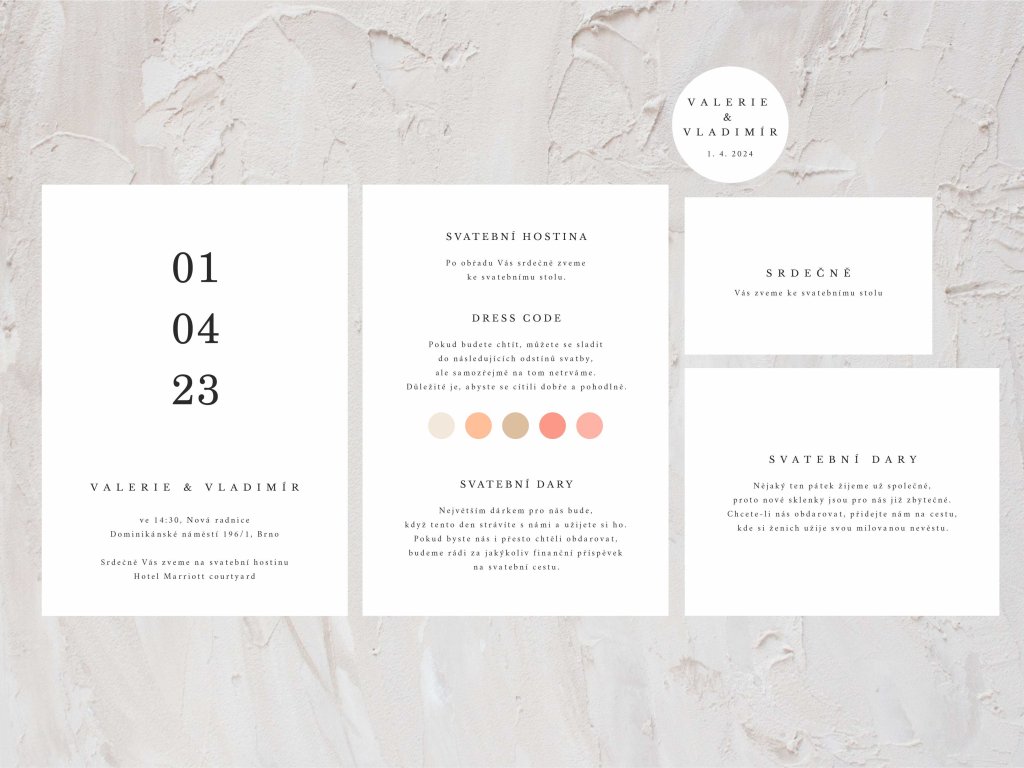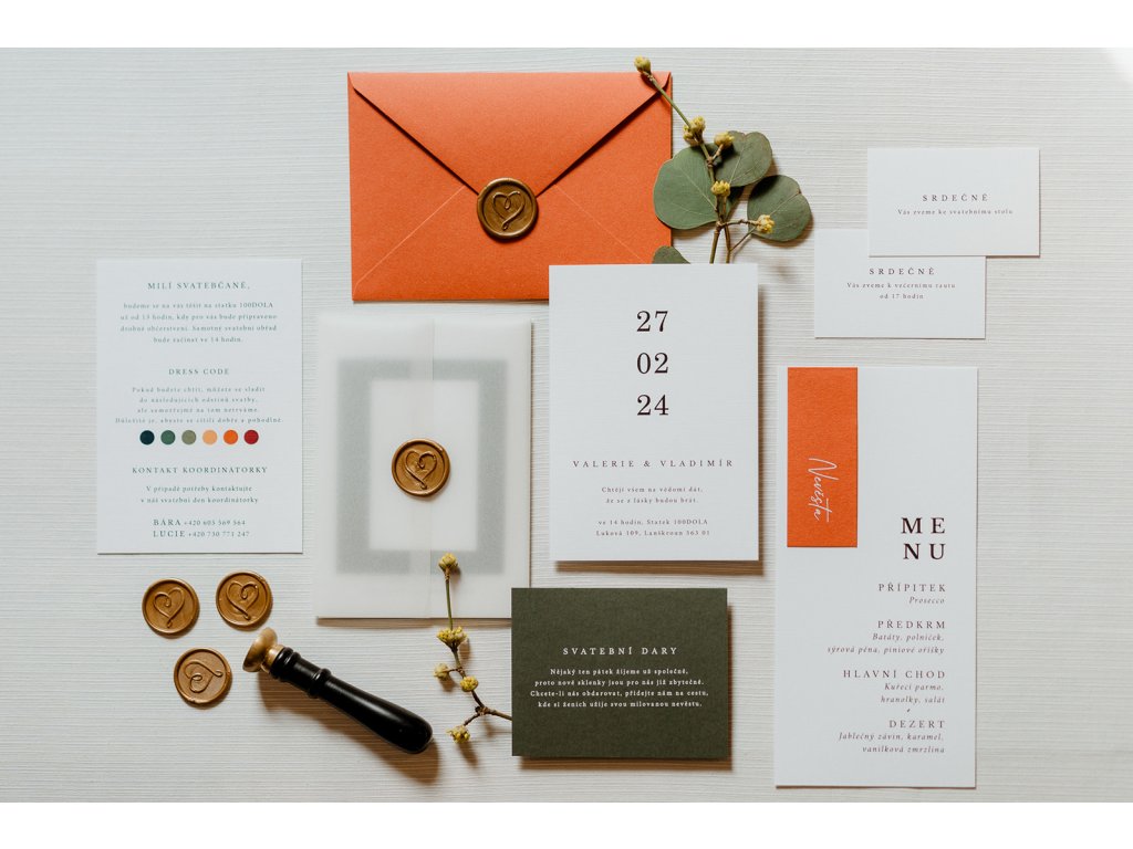 V rovnakom dizajne ako oznámenie možno objednať aj ďalšie tlačoviny na svadbu či iný Deň D.