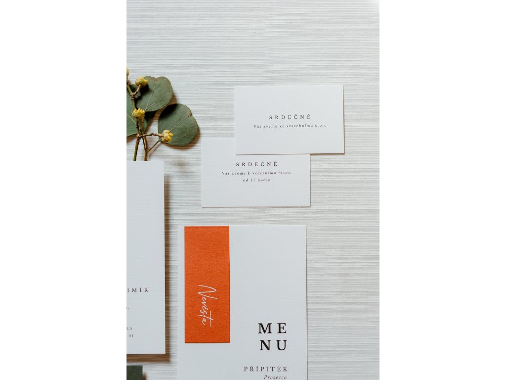 Ak budete chcieť aj ďalšie tlačoviny pre váš Deň D, nemusíte všetko objednávať naraz, nie je problém doobjednať neskôr, napríklad až budete mať potvrdených hostí na menovky, menu, program, uvítací plagát, etikety na fľaše alebo ďalšie doplnky z našej ponuky.