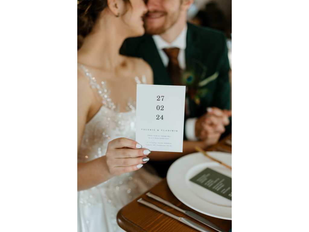 Vytvorte nezabudnuteľné spomienky s našimi svadobnými oznámeniami, ktoré sa stanú predzvesťou vášho výnimočného dňa. Naša originálna grafika je tlačená na najkvalitnejší grafický papier s gramážou 300g/m² v profesionálnej tlačiarni, čím zabezpečíme exkluzívny a elegantný vzhľad vašich oznámení, ktorý zanechá dojem.