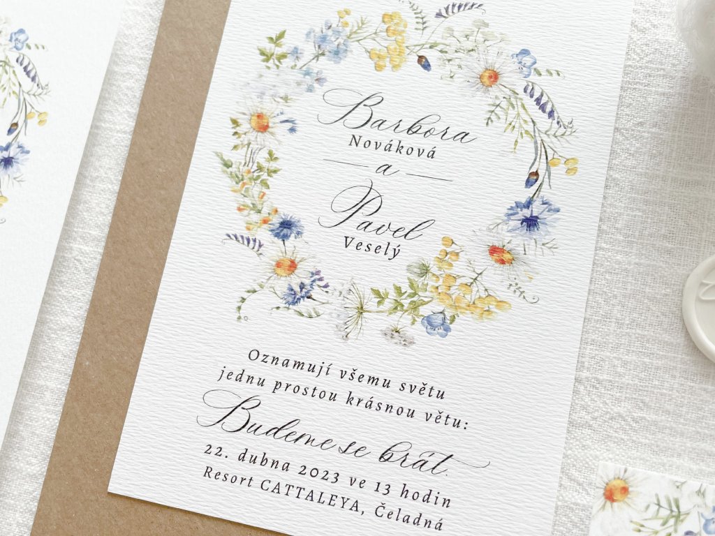 V rovnakom dizajne ako oznámenie možno objednať aj ďalšie tlačoviny na svadbu či iný Deň D.