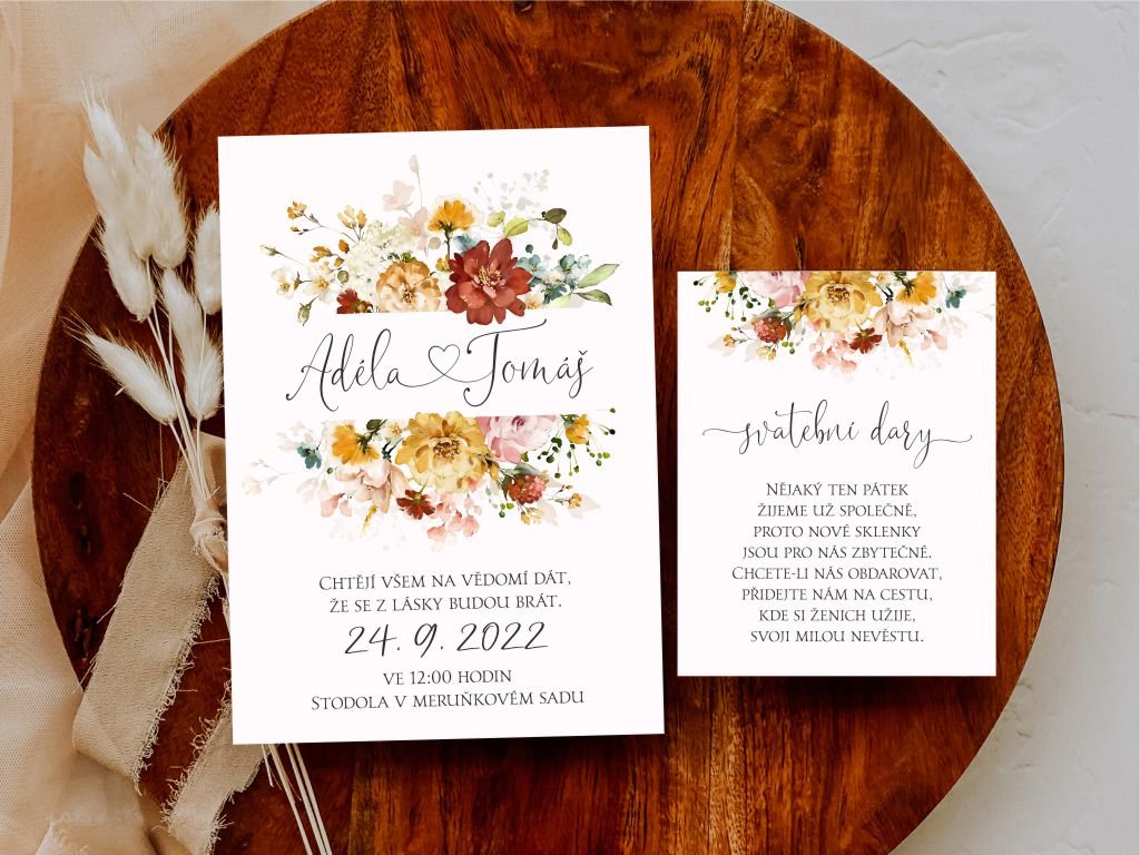 Zvoľte typ, množstvo a preferovaný spôsob platby a dopravy. Ak objednáte 50 a viac kusov svadobných oznámení, darujeme vám jedno zväčšené oznámenie vo formáte A4 – ideálne ako spomienka do rámčeka.