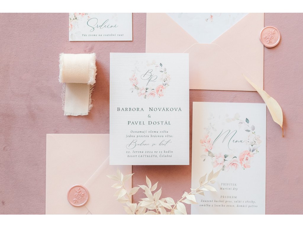 V rovnakom dizajne ako oznámenie možno objednať aj ďalšie tlačoviny na svadbu či iný Deň D.