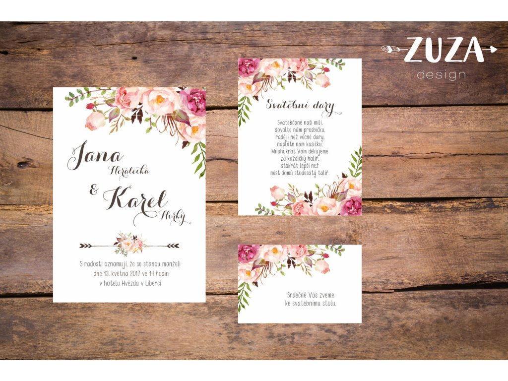 V rovnakom dizajne ako oznámenie možno objednať aj ďalšie tlačoviny na svadbu či iný Deň D.