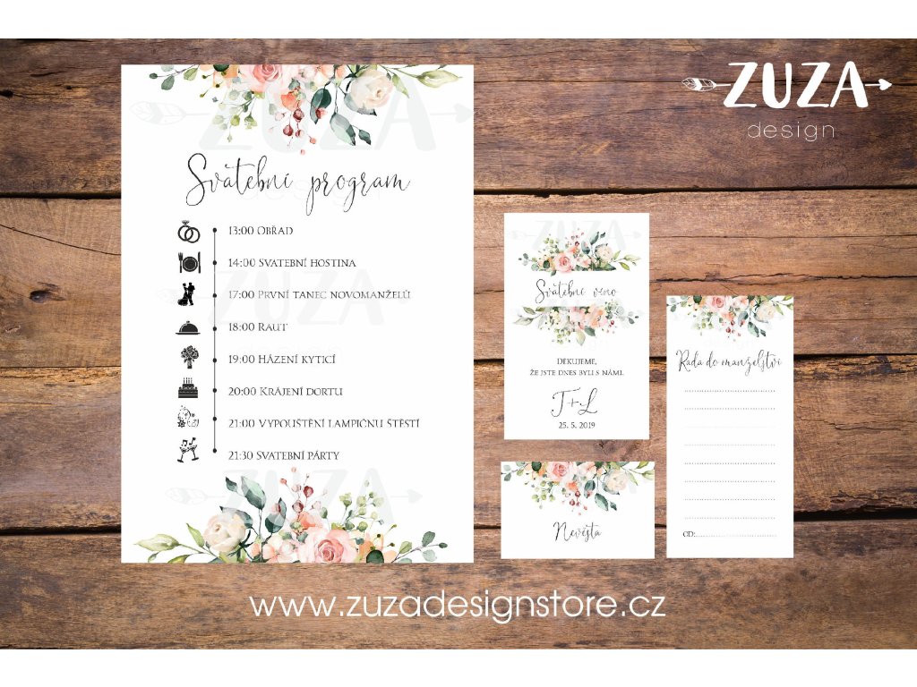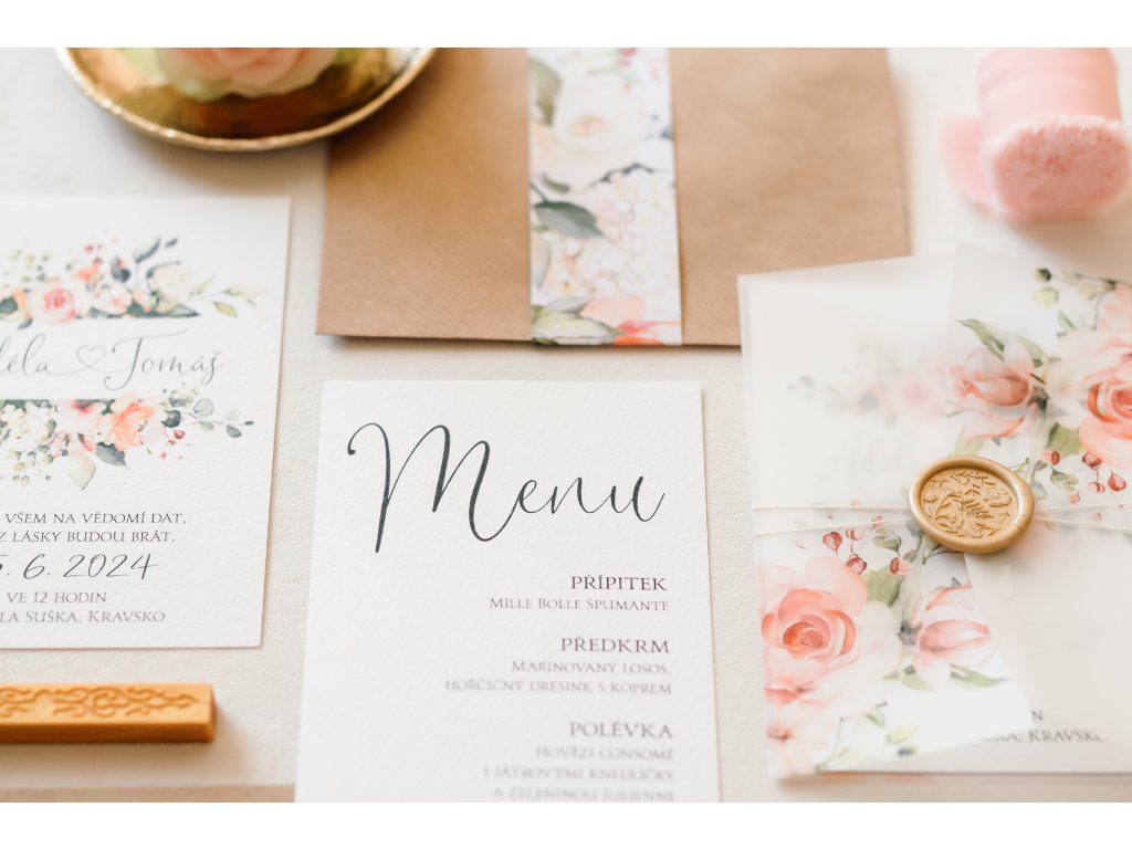 V rovnakom dizajne ako oznámenie možno objednať aj ďalšie tlačoviny na svadbu či iný Deň D.