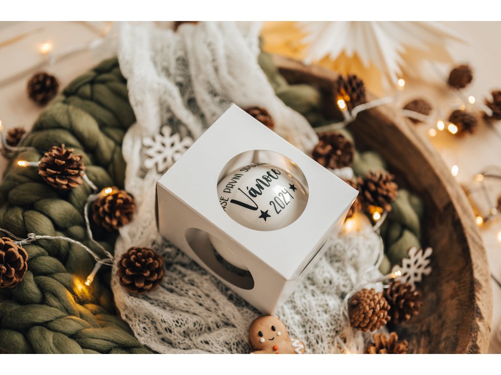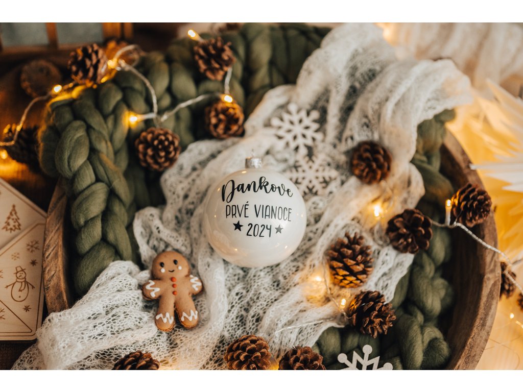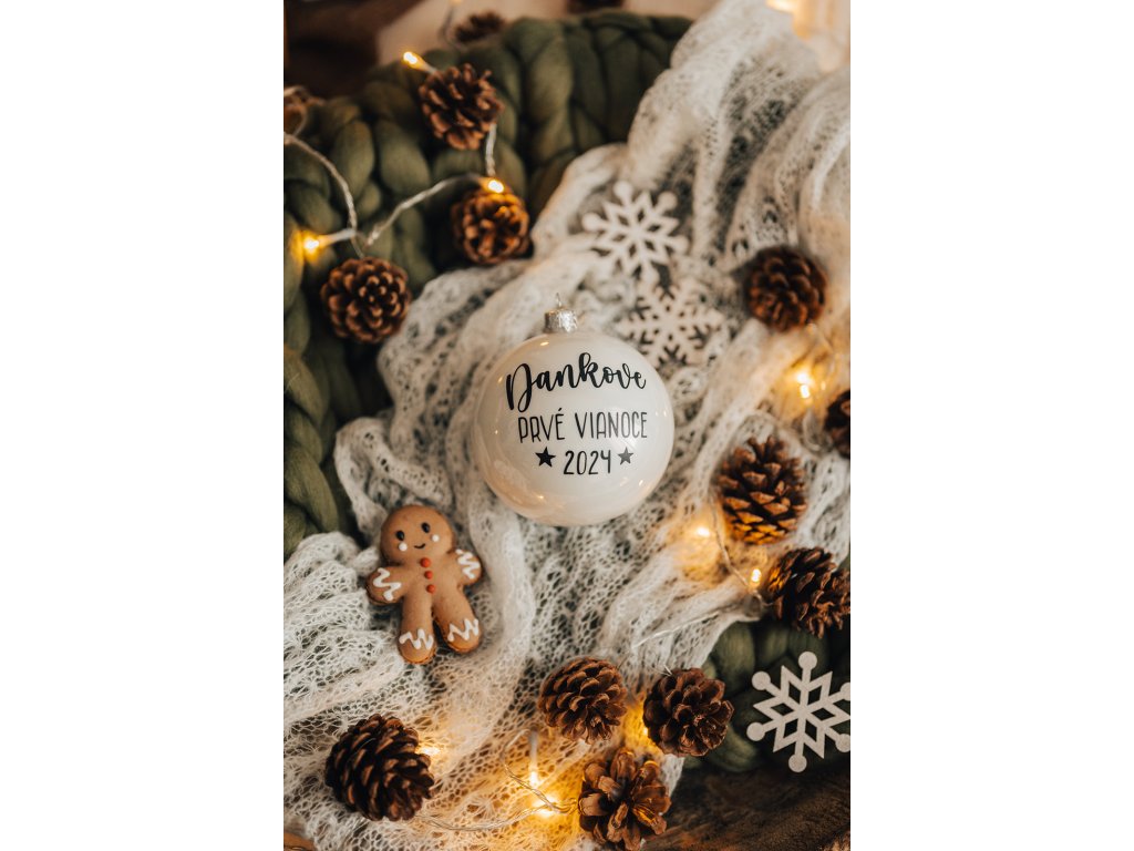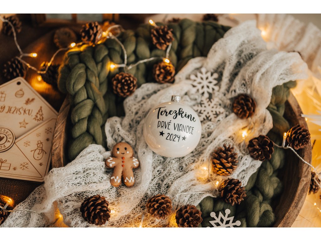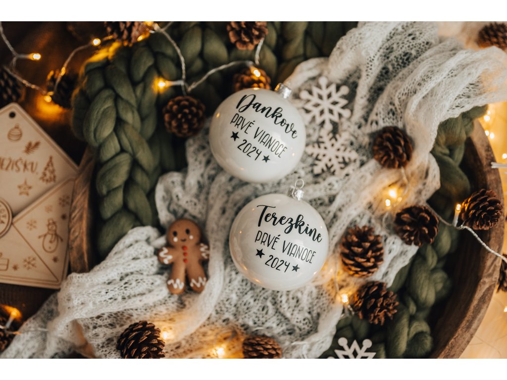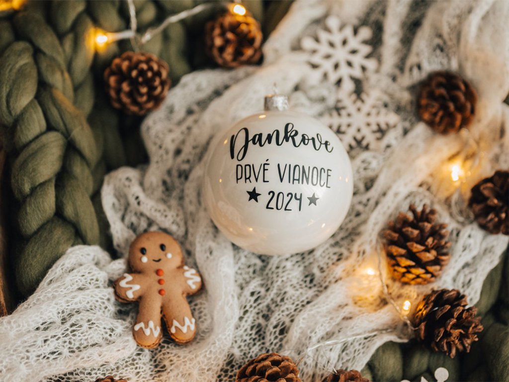 Uchovajte tie najkrajšie okamihy prvých Vianoc vášho dieťaťa. Štýlová vianočná guľa s menom a rokom, kedy ste oslávili prvé Vianoce spoločne.